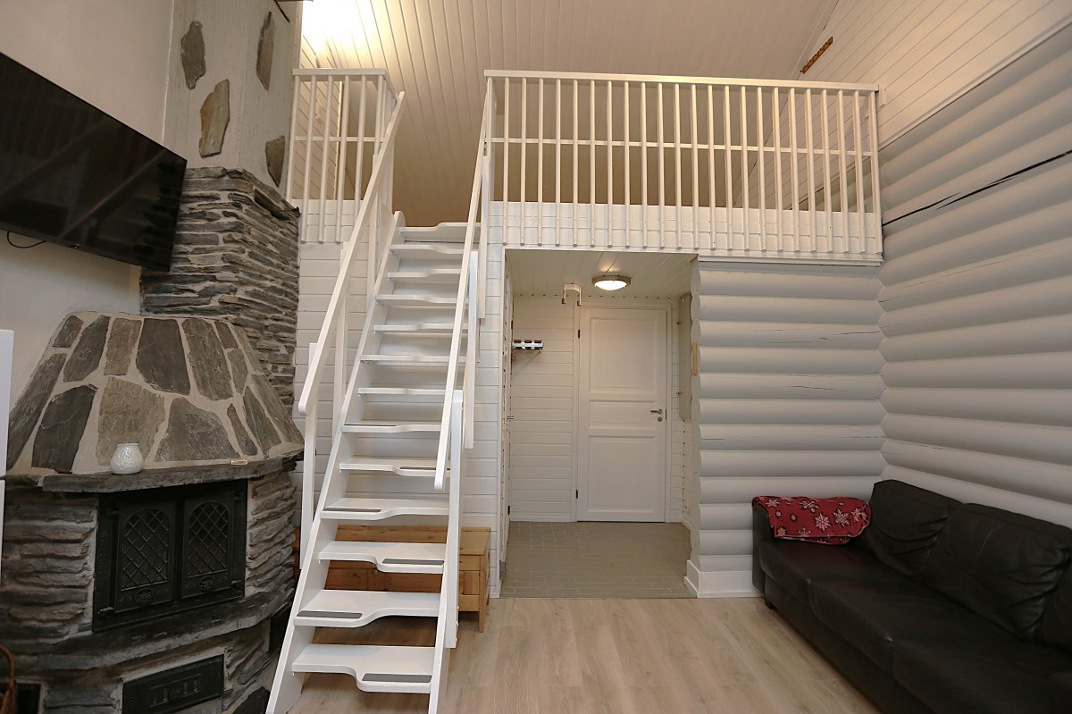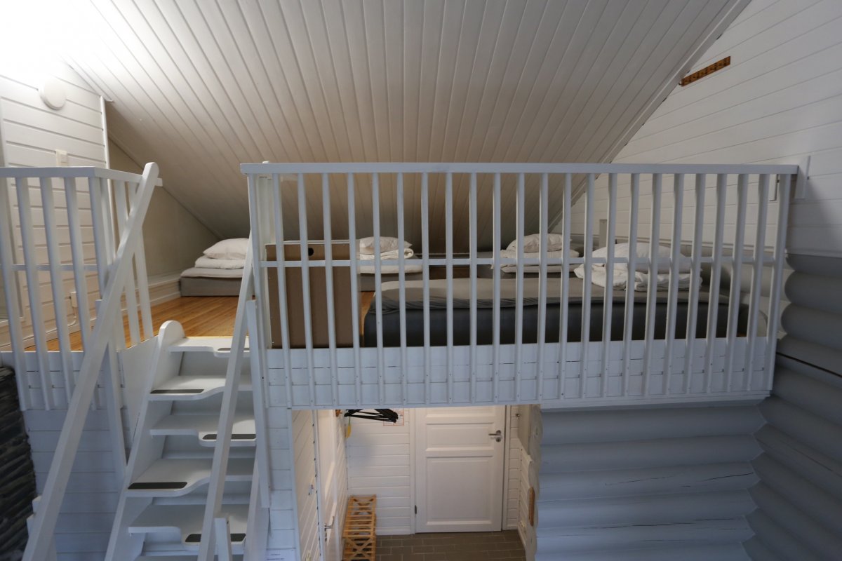 Alakerrassa 1 makuuhuone, jossa on 2 erillistä sänkyä. Parvella on 4 erillistä sänkyä.
